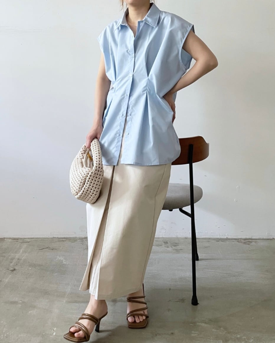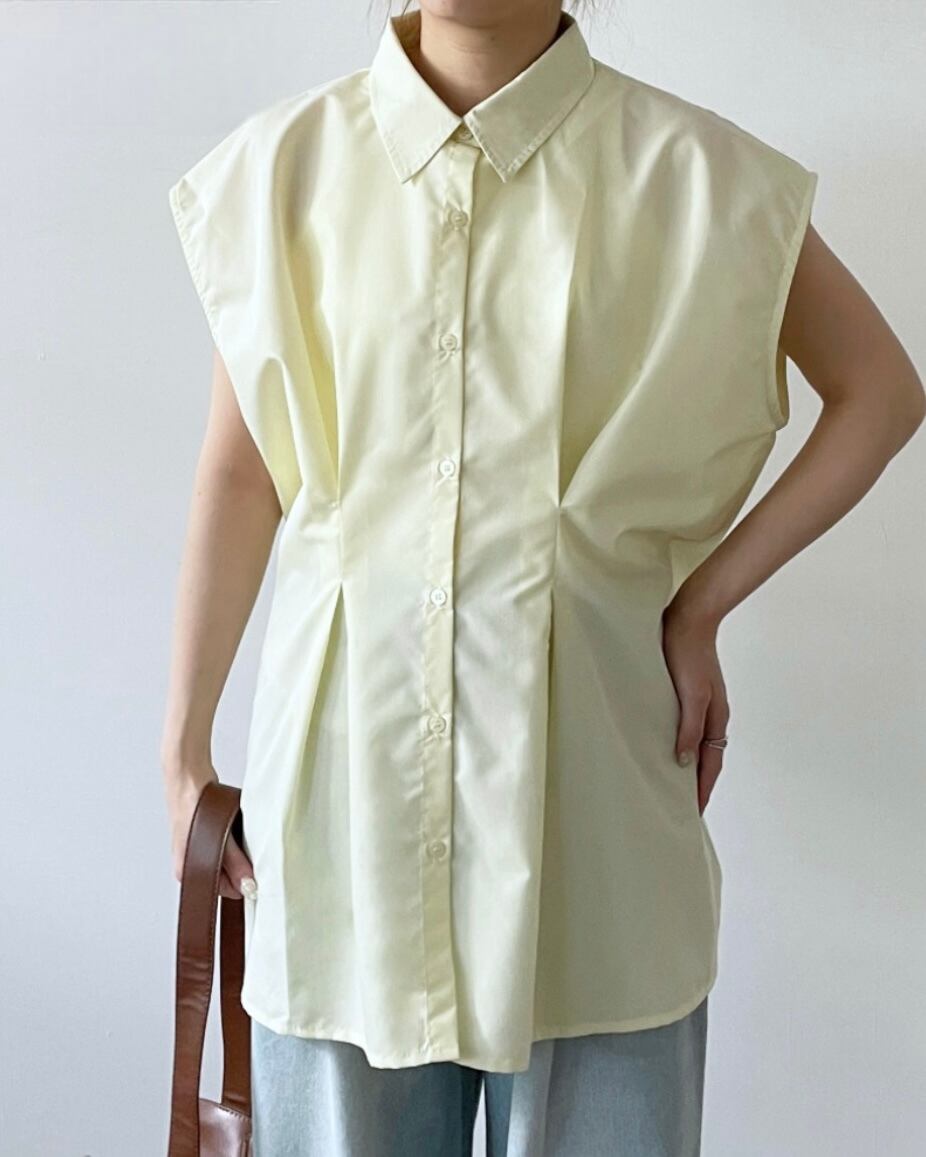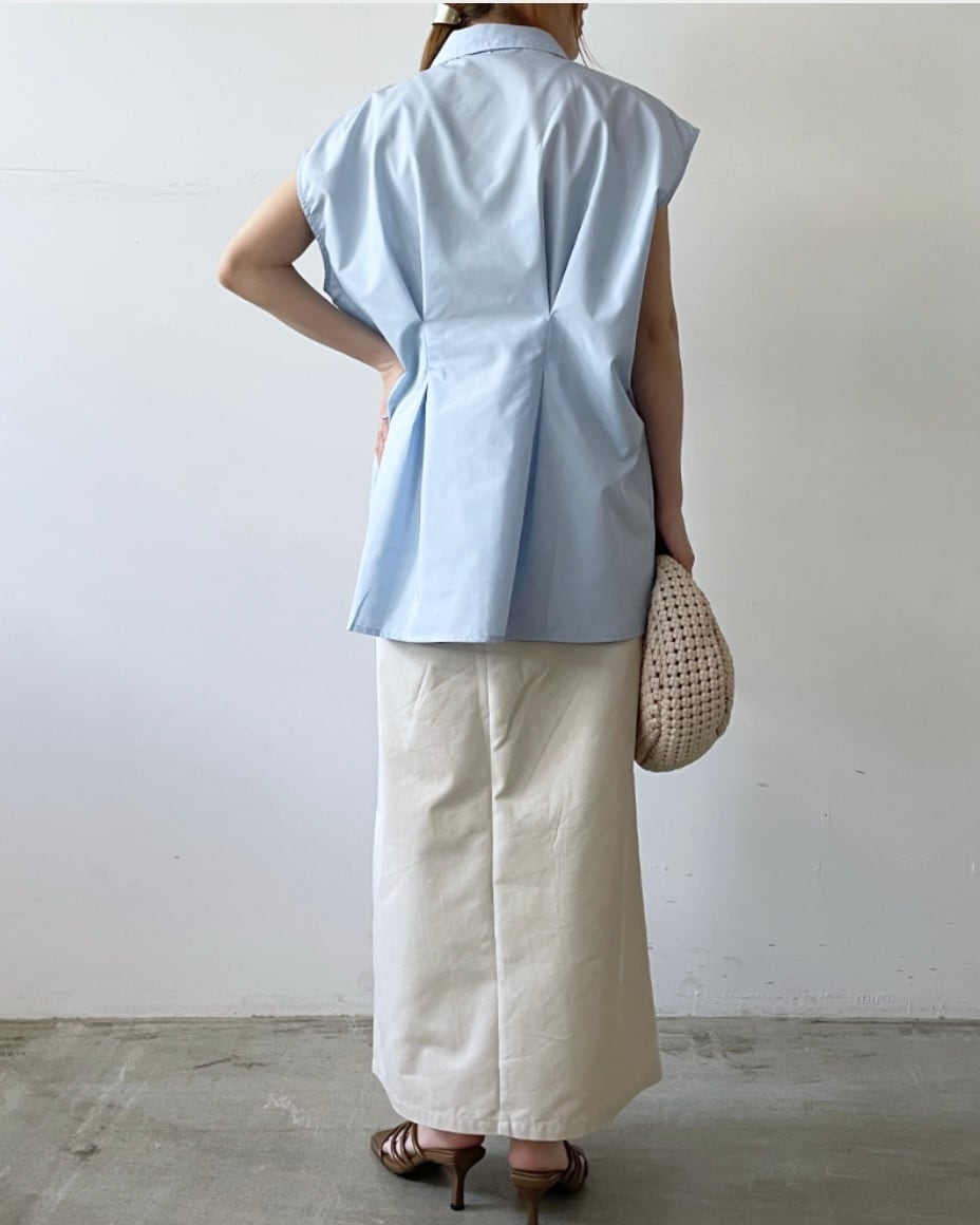 ブロード生地のタックノースリーブシャツ