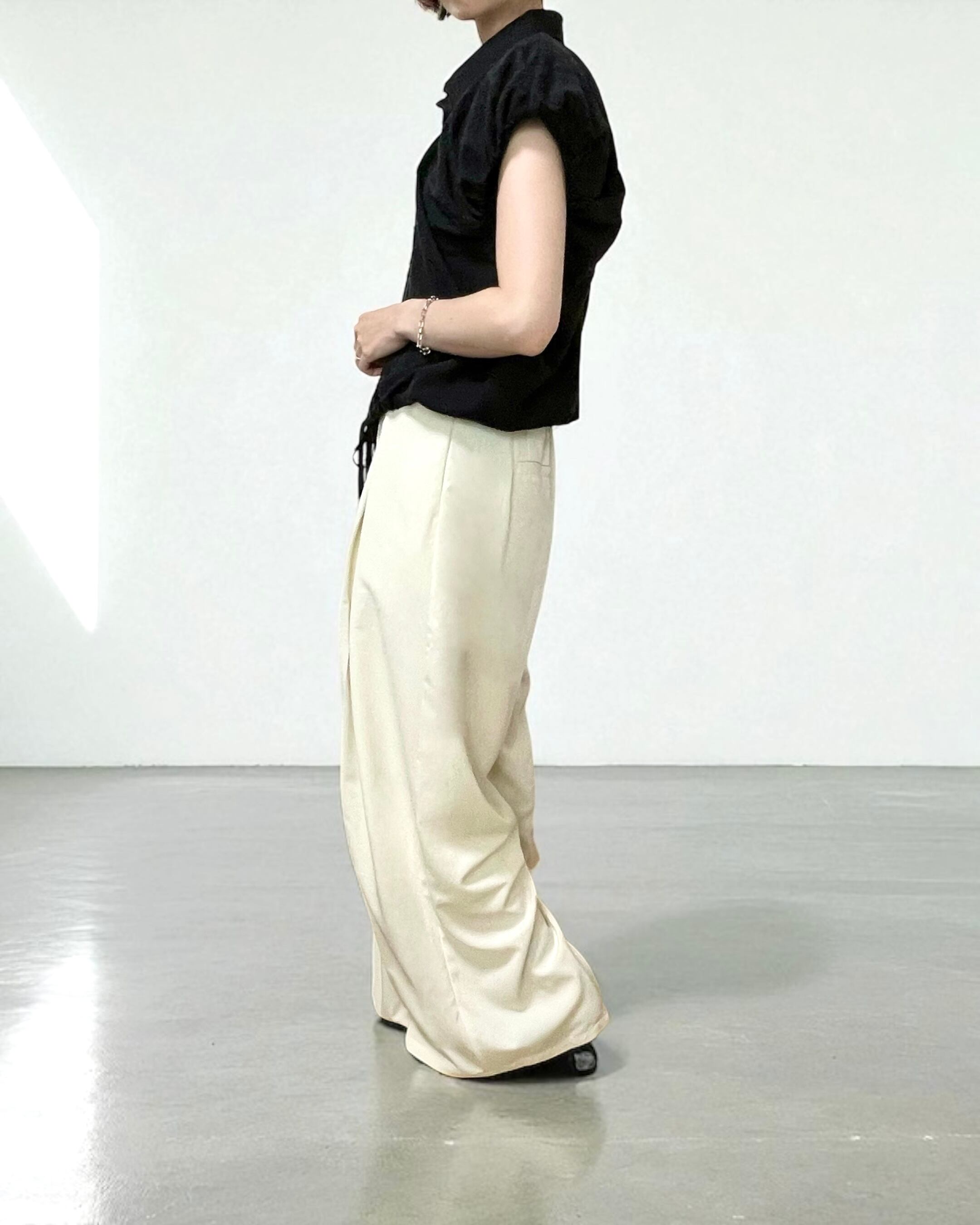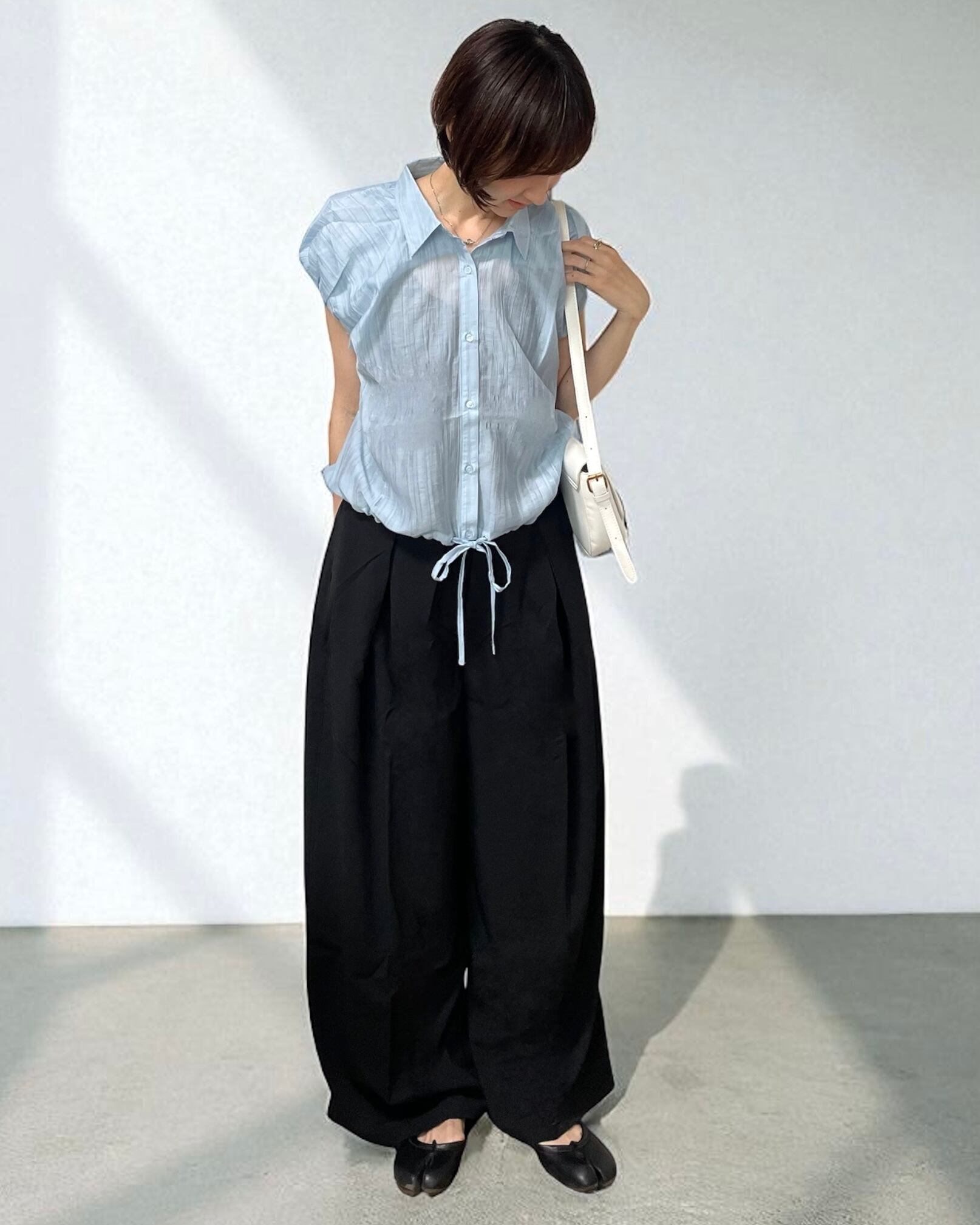 裾部分は絞ることができ、様々なボトムスでコーデを組むことができます。