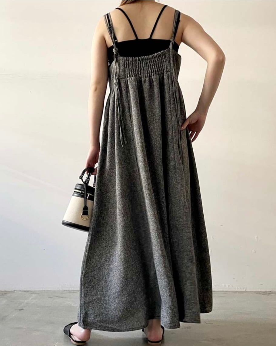 背面はシャーリング仕様なので、伸縮がありバスト周りの着苦しさもありません。