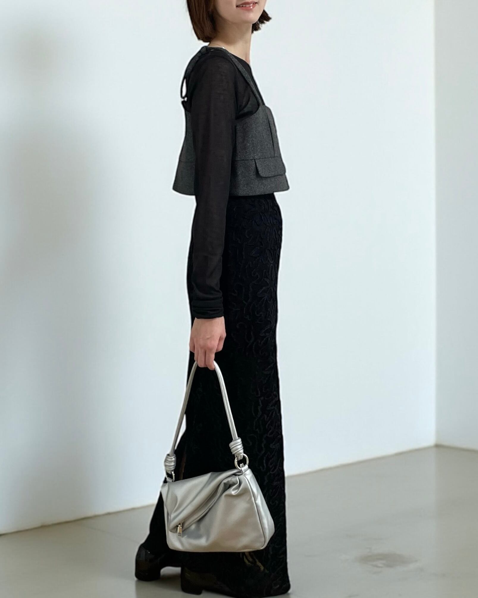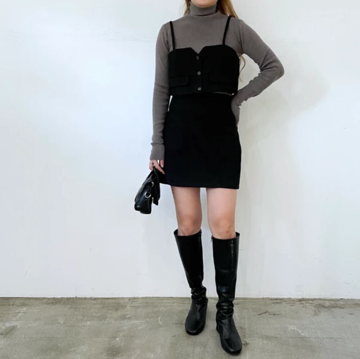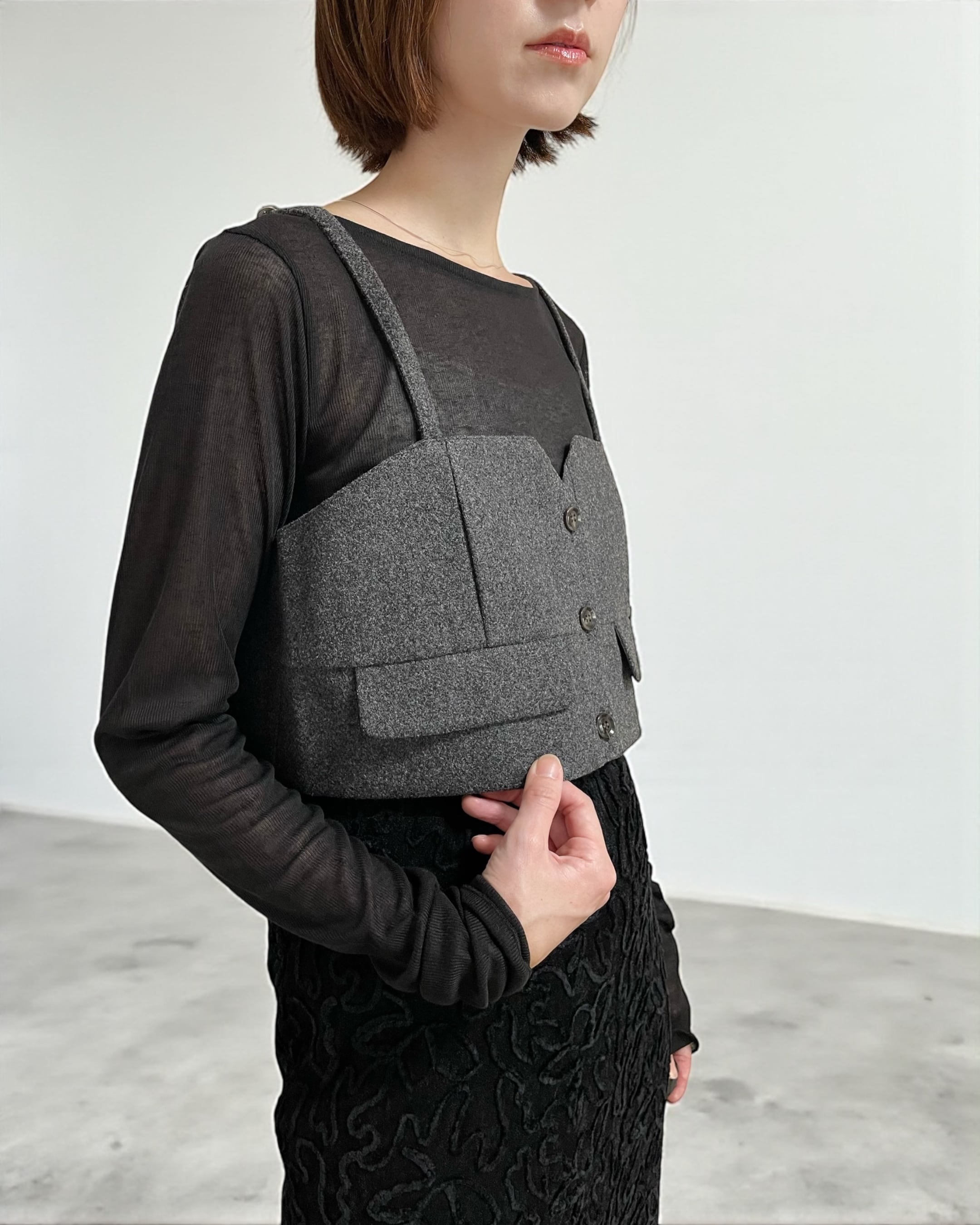 立体的なシルエットが目を惹くフェイクウールビスチェ。