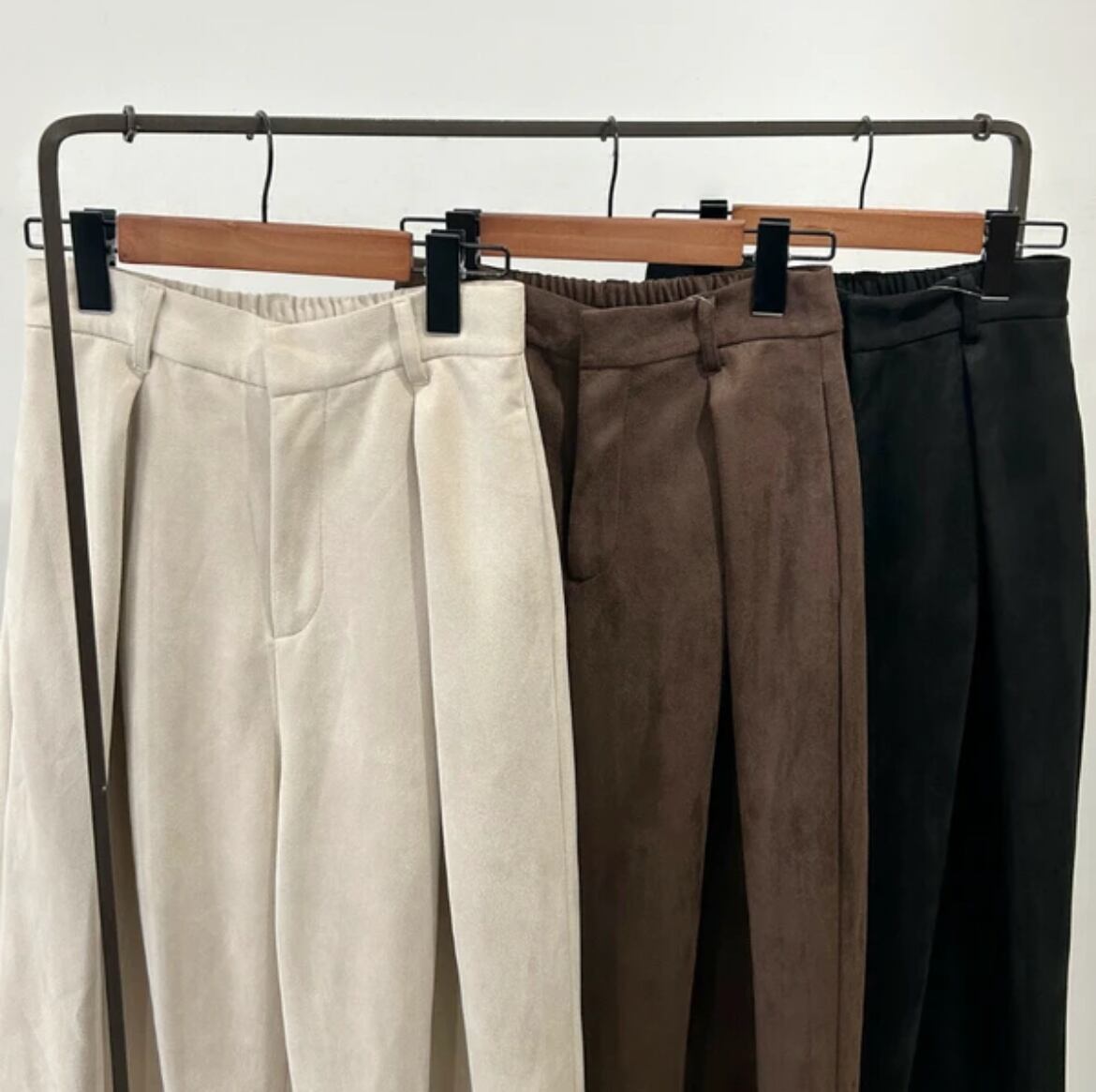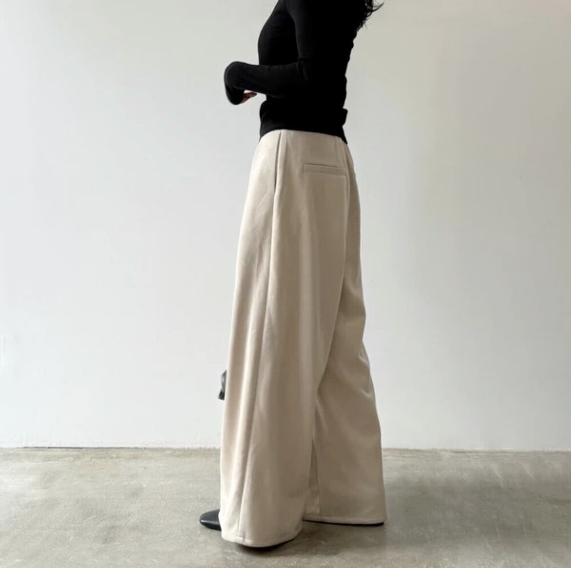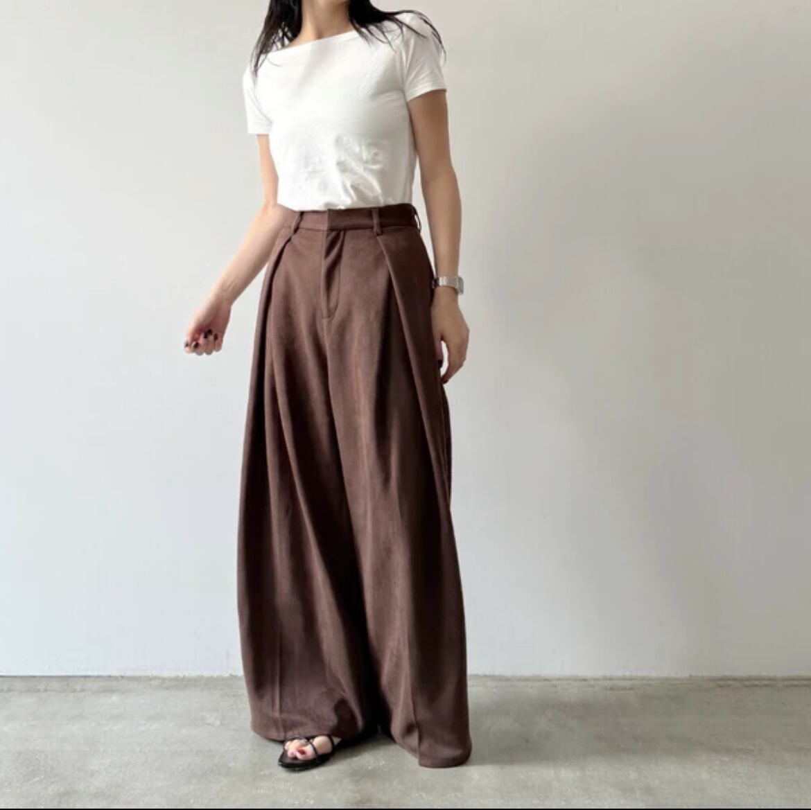 ウエスト(ゴム最大)32(76)㎝ 股上34㎝ 股下67.5㎝ ヒップ(上がり/タック込)58/78㎝ わたり43.5㎝ 裾巾33㎝ ベルト巾4㎝