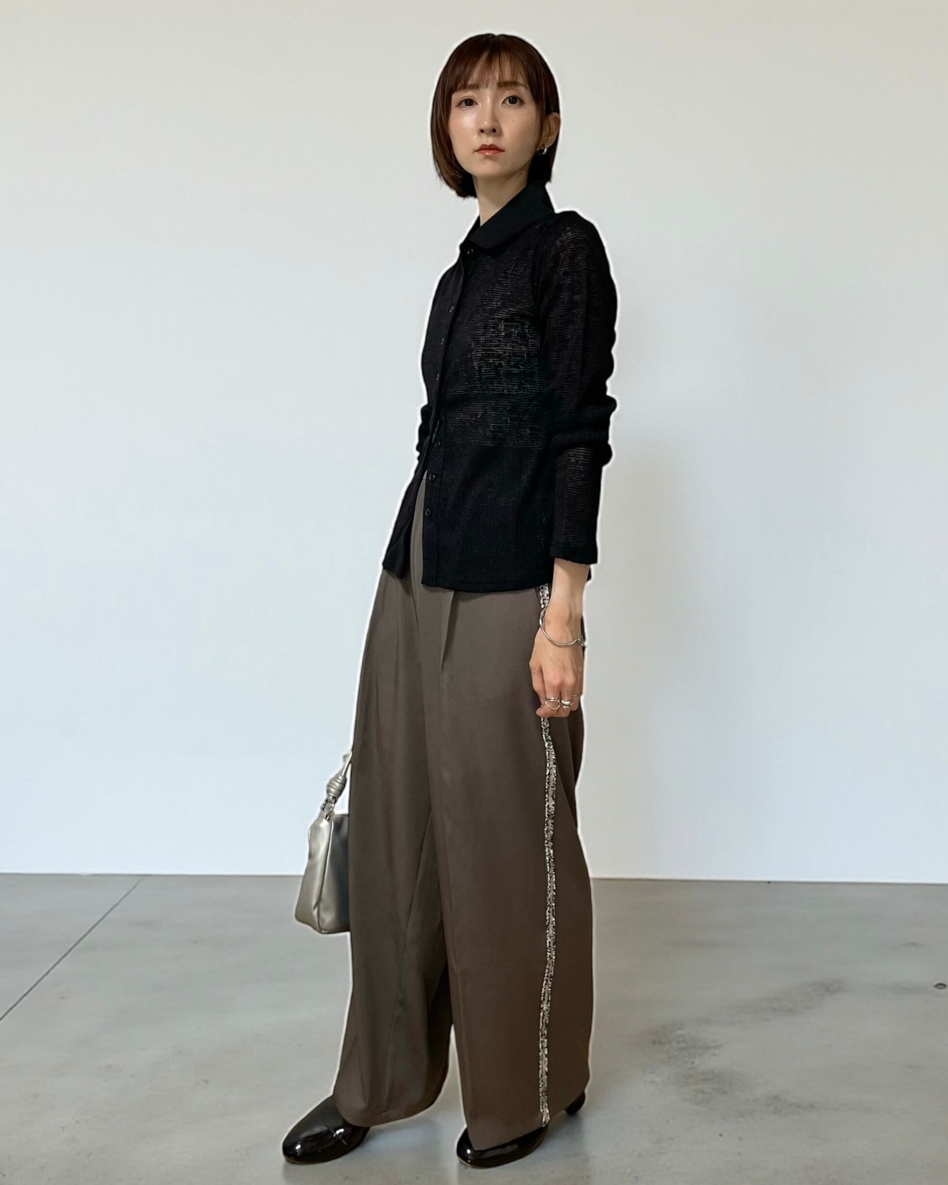 シャツライクなデザインでシンプルながらも上品で抜け感のある印象に。