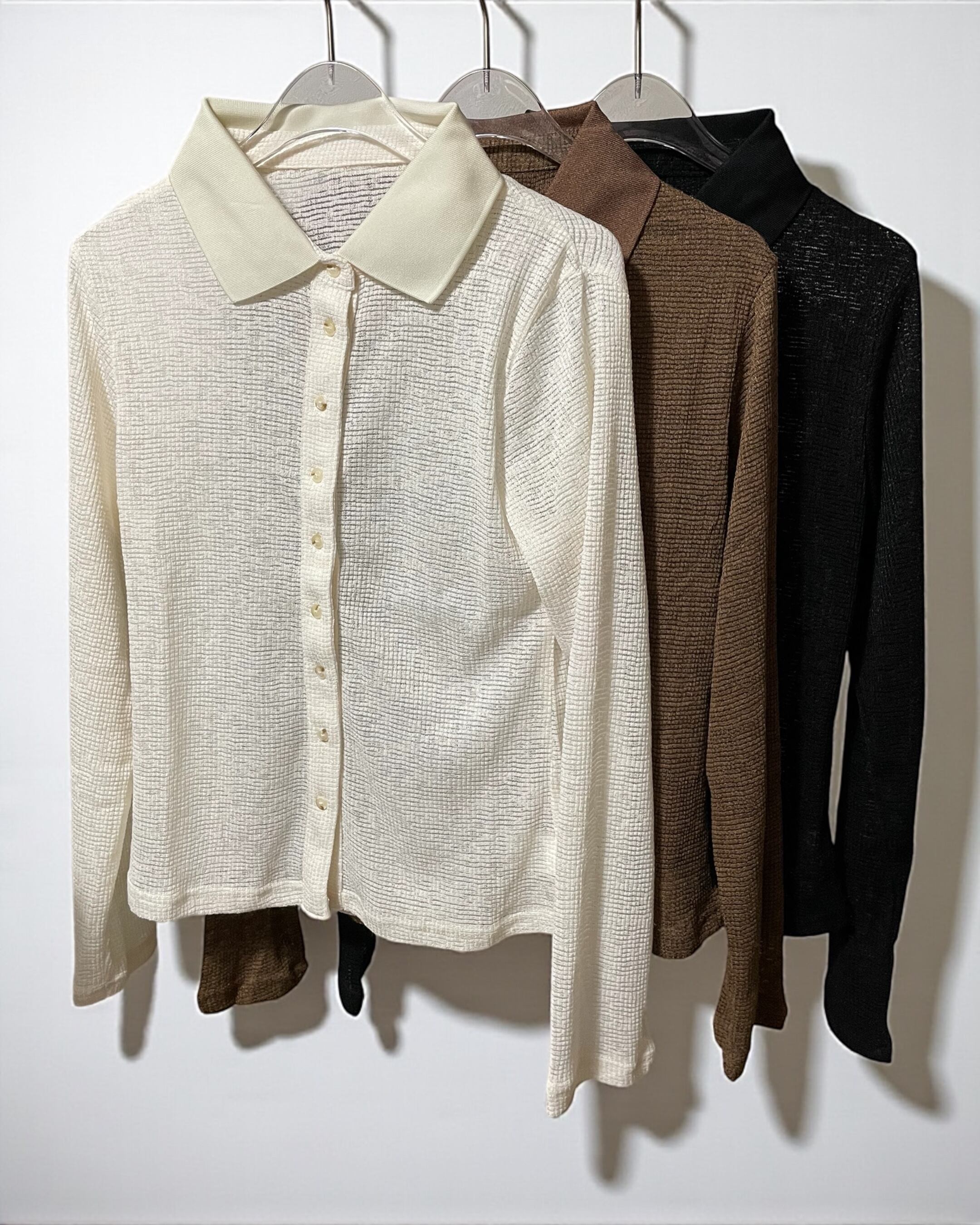 抜け感のある襟付きデザインで、首元を美しく見せてくれます。